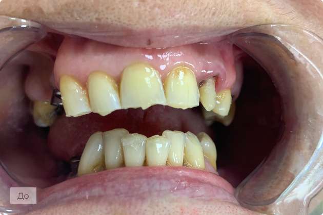 Пациент обратился с жалобами на разрушение зубов верхней и нижней челюсти, отсутствие зубов в боковом отделе нижней челюсти и неудовлетворительное эстетическое состояние фронтальных зубов, в том числе их скученность.