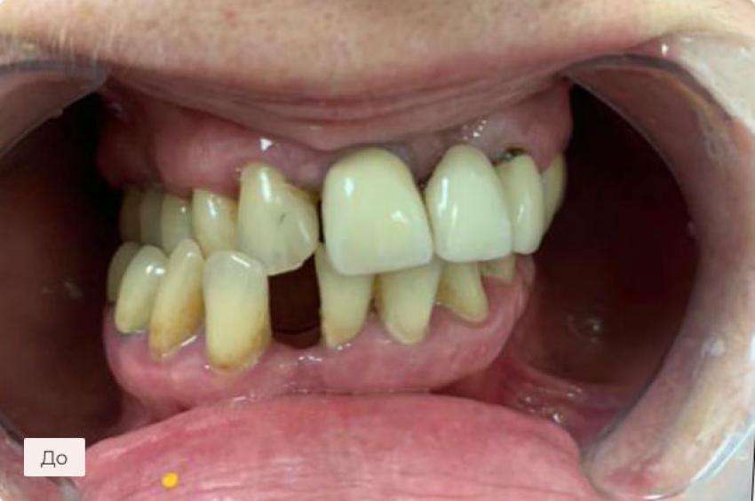 Пациент обратился с жалобами на разрушение зубов верхней и нижней челюсти, отсутствие зубов в боковом отделе нижней челюсти.