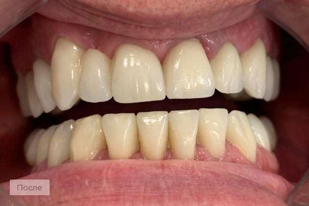 После комплекса диагностических мероприятий и консультаций с клиентом было принято решение установить коронки на основе оксида циркона на верхнюю челюсть и виниры из керамики Е-мах.