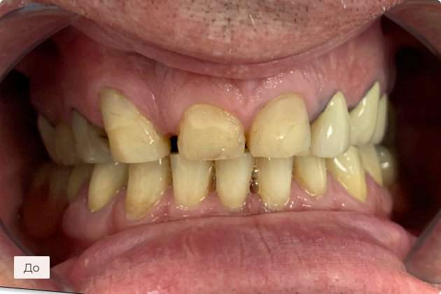 Пациент обратился с жалобами на разрушение зубов верхней и нижней челюсти и неудовлетворительное эстетическое состояние фронтальных зубов, а также отсутствие 12-го зуба.