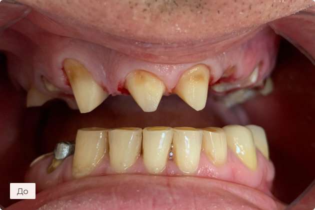 Нам удалось полностью восстановить разрушенные зубы пациента.