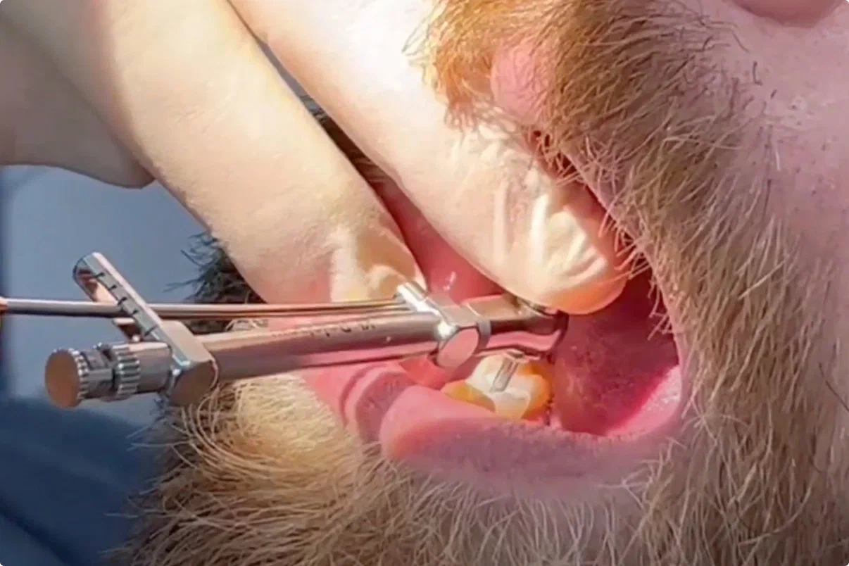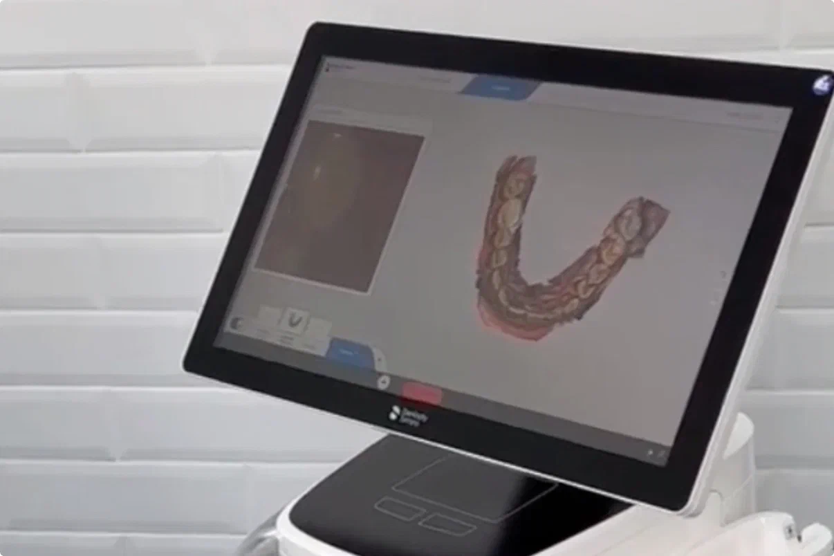 Два месяца назад пациенту был установлен имплантат Straumann, а сейчас ему устанавливают циркониевые коронки. Вначале проводится сканирование зубов для диагностики. Высокоточные цифровые слепки, которые снимает сканер, позволяют получить полное представление о состоянии челюсти пациента. Всего через пару минут результат сканирования готов и 3D-изображение челюсти пациента выводится на экран.