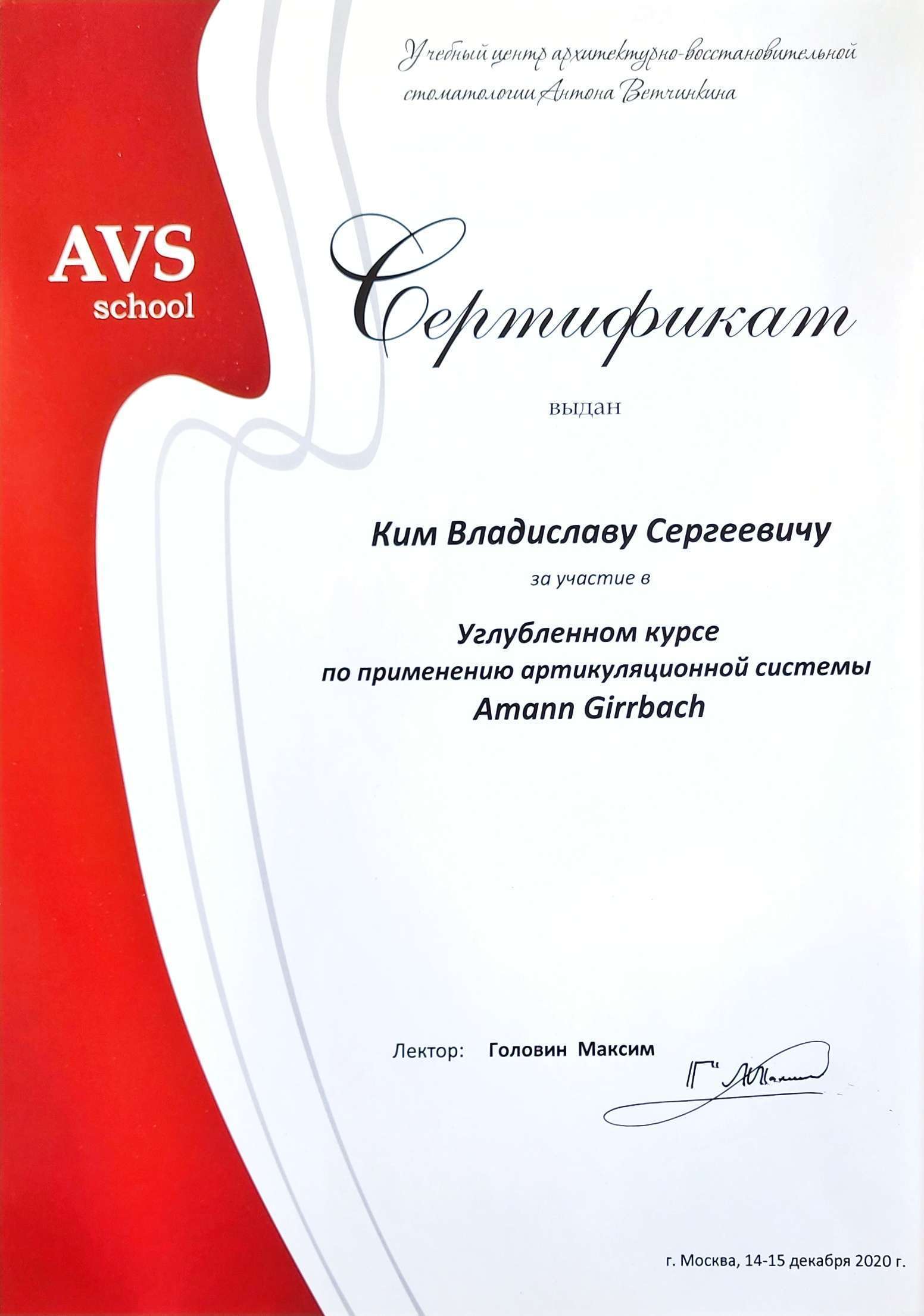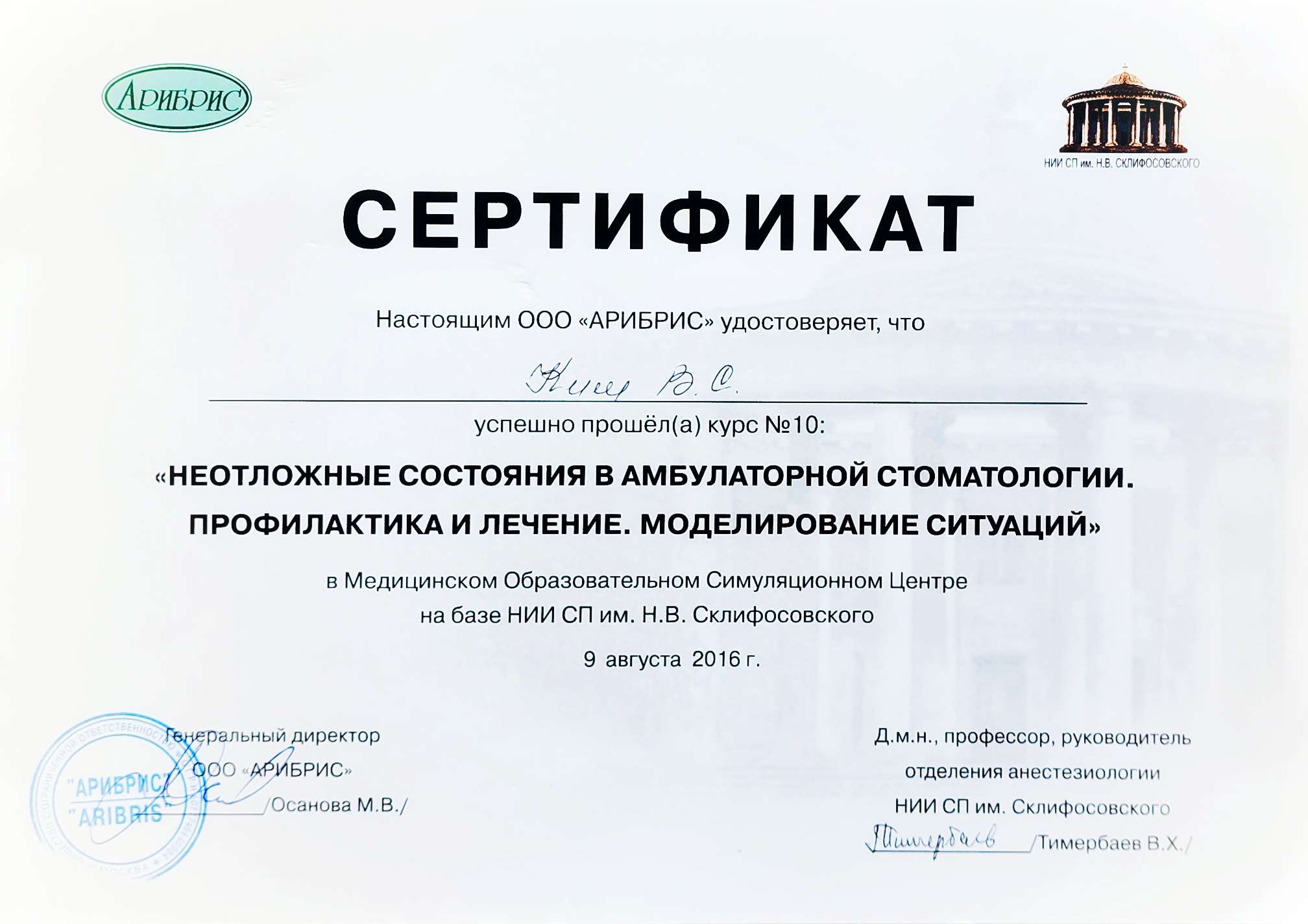 - 2014-2015 Интернатура на кафедре клинической инновационной стоматологии профессора Л.Н. Максимовской
